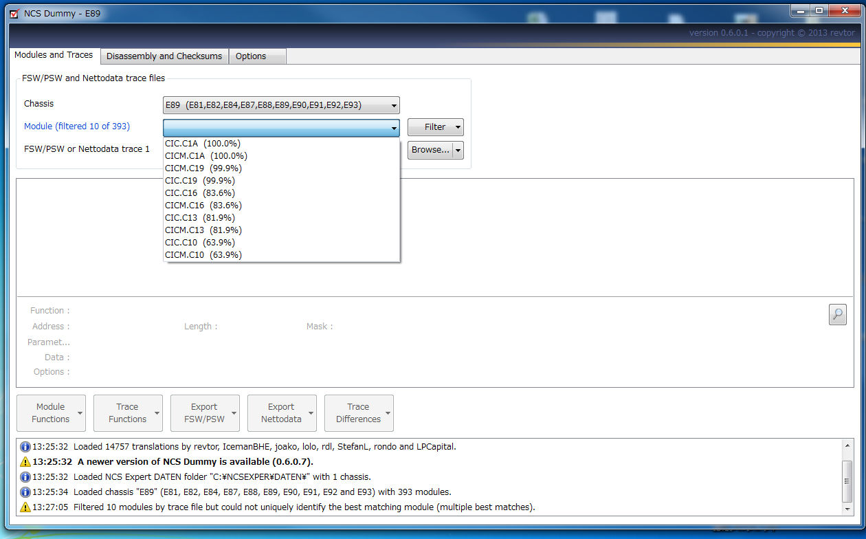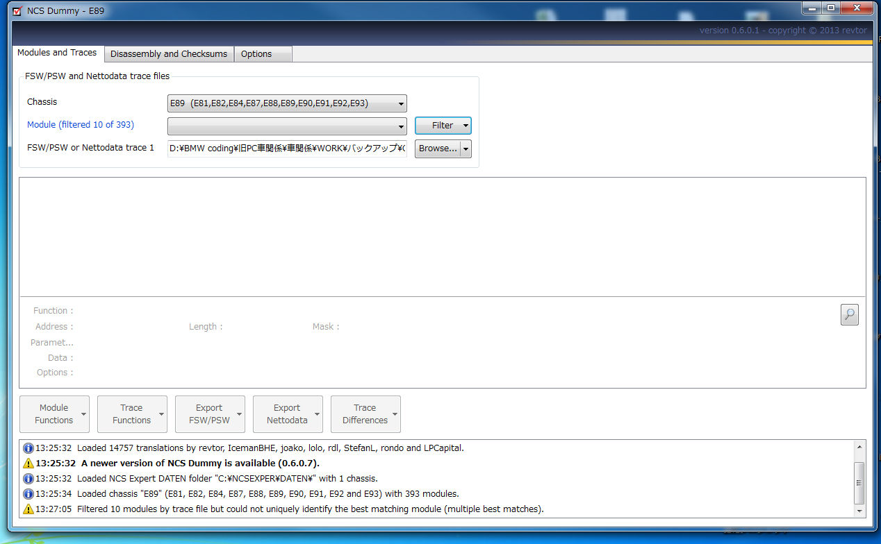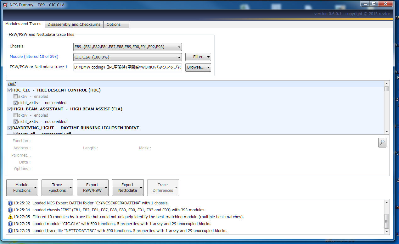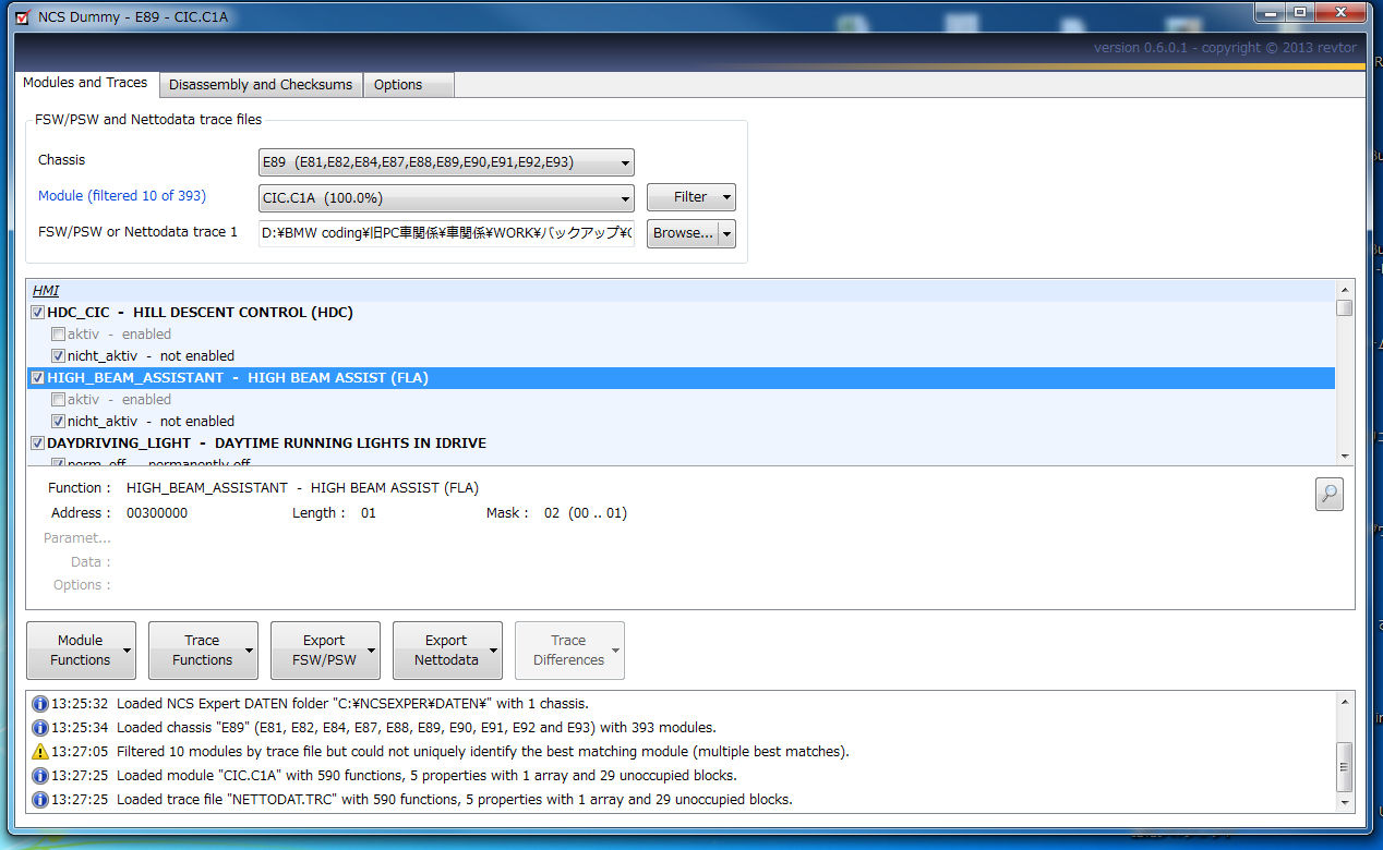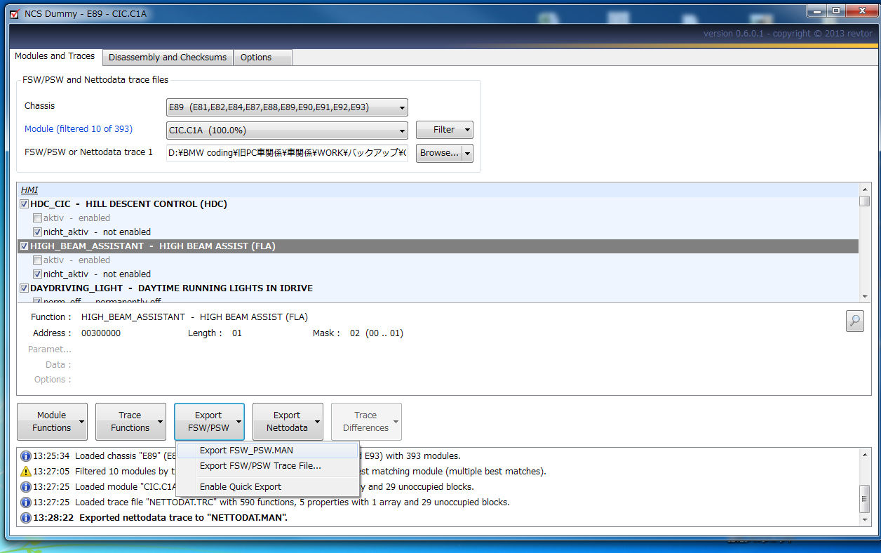 基本的にはNETTODATコーディングの場合、NETTODAT.TRCをNCS Dummyで読み込んで、NETTODAT.MANをExportし、NETTODATコーディングで書き込むことをお勧めします。