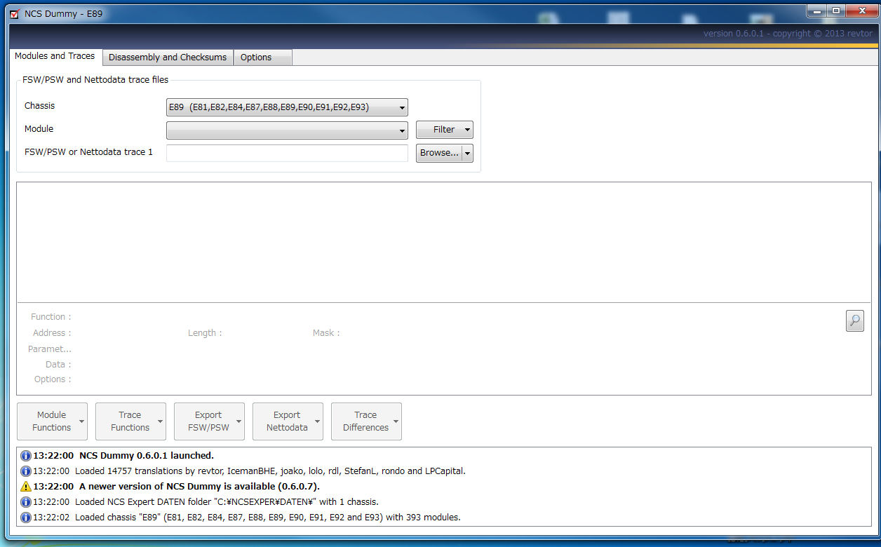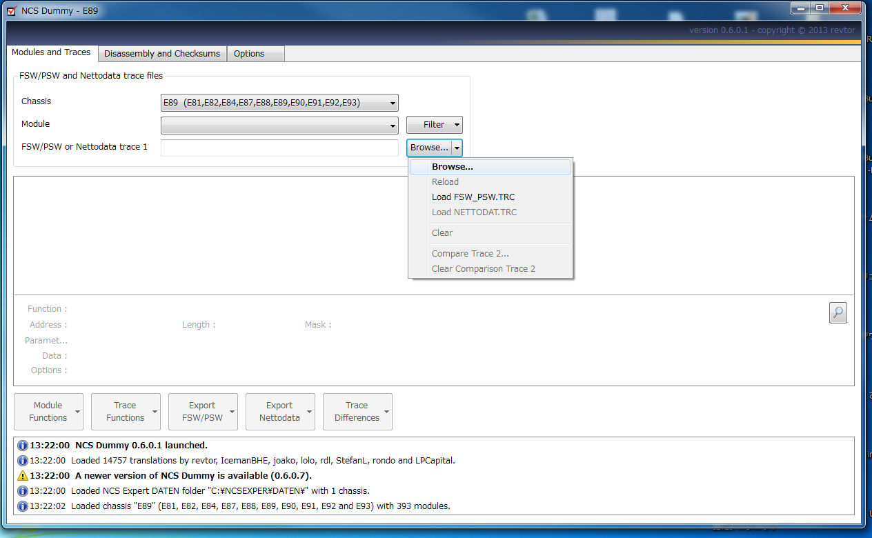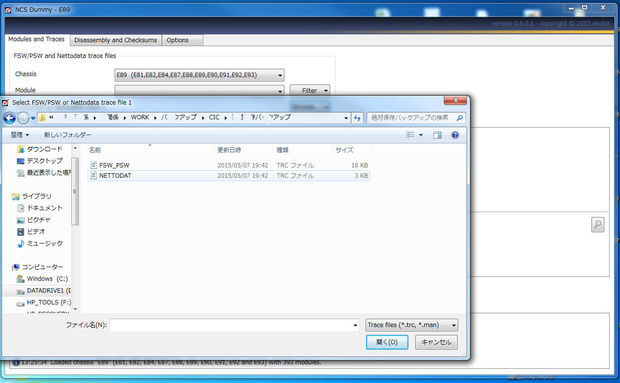 NCS Expertで取り出したデータ(NETTODAT.TRCやFSW_PSW.TRC)をPCに保存してあれば、それをNCS Dummyに読み込んで、書き換えて、NCS Expertで書き込むためのMANファイルに変換します。